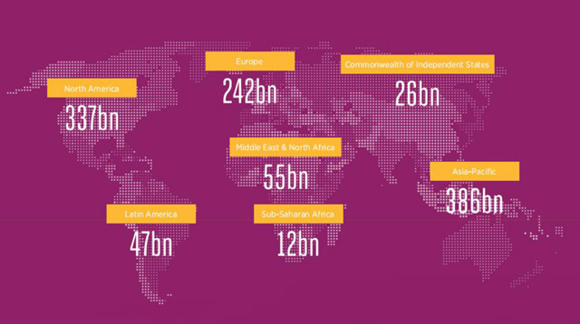 图:2025年全球不同区域的物联网收入。数据来源:GSMA Intelligence。