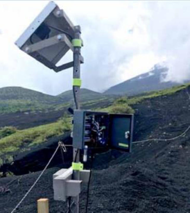 图:搭载LTE-M技术的"Mieru Fuji-tozan"传感器被安装在富士山上的站点。