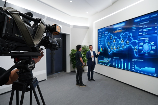 图为凤凰卫视记者体验平安智慧城市“全视通城市智脑”