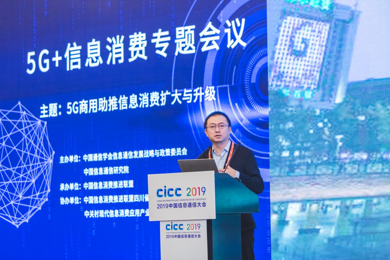 11月29日,2019中国信息通信大会在四川成都开幕,5G+信息消费专题会议同期举行。中国通信学会副秘书长滕伟、中国信息通信研究院(下简称“中国信通院”)副院长王志勤、四川省信息化办公室专职副主任陈文涛、工业和信息化部信息化和软件服务业司处长冯伟出席会议并致辞,会议由中国信通院产业与规划研究所所长、中国信息消费推进联盟(以下简称“联盟”)常务副秘书长徐志发主持。