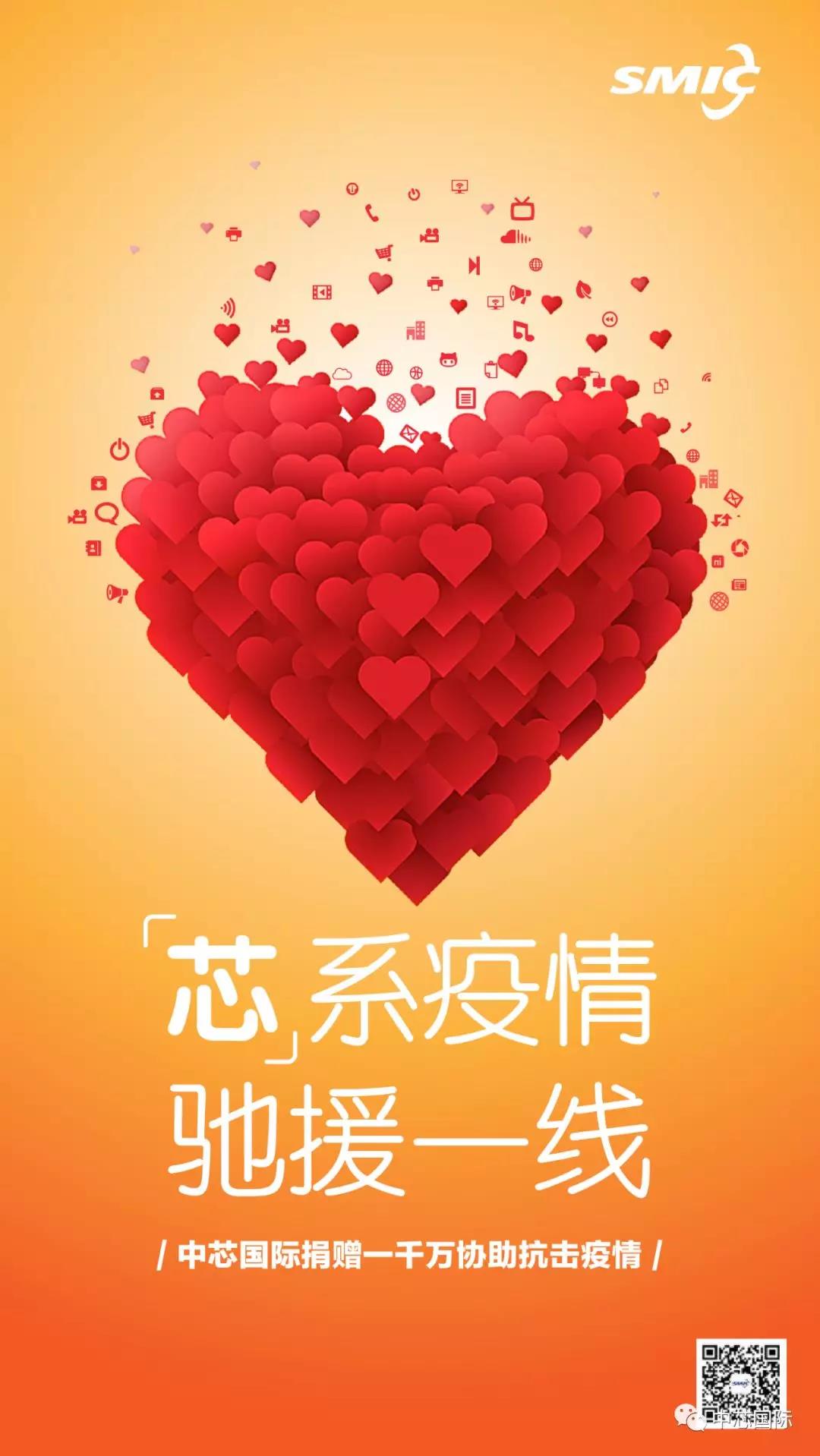 2020年2月7日,中芯国际宣布,公司携手员工及董事捐赠1000万元人民币,用于抗击新型冠状病毒肺炎疫情。其中,第一笔500万元已通过上海市慈善基金会捐赠,专项用于支持湖北省新型冠状病毒肺炎疫情防控、人员救治、医务人员保障相关的各项工作;第二笔500万元优先以防疫及救护的急需物资为主,继续向重点疫情地区捐助。此前,中芯国际参股子公司中芯聚源及中芯绍兴已分别为疫情防控捐款100万元和50万元人民币。