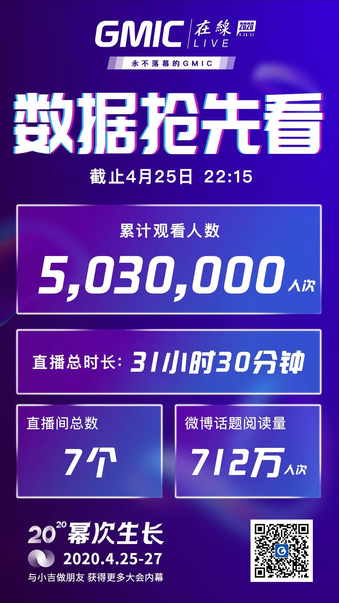 以上就是GMIC在线2020主会场第一部分——「生长力:抗疫之后,肆意生长」的精彩内容。今晚,我们取得了5030000累计人数观看,感谢大家的支持与观看。