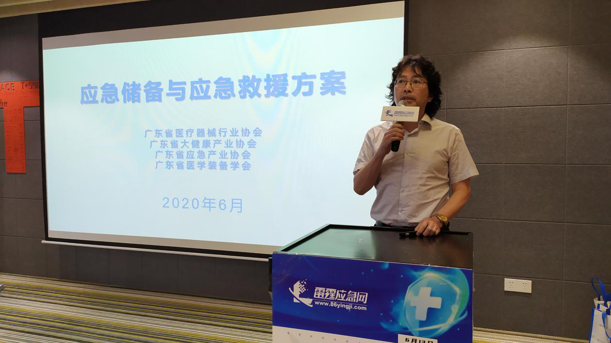 在应急救援物质储备平台建设方面,广东省医疗器械行业协会副秘书长周明做了进一步的分享,他分享的主题是“应急储备与应急救援方案”,从年初的新冠疫情为案例,分析了医疗物资生产、储备以及配送的重要性和相关建议。
