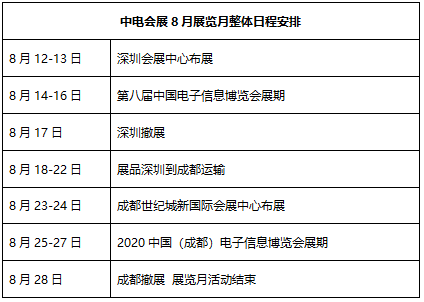 深圳作为中国电子信息行业最领先的城市,成都作为电子信息新一线城市,同时选为首批5G试点城市,中电会展推出2020展览月活动,在深圳、成都两地巡展联动,共同设置5G与大数据、 集成电路、智能制造、人工智能、高端元器件等共同展区,以新基建促进产业基础高级化和产业链现代化为目标助力行业复苏。