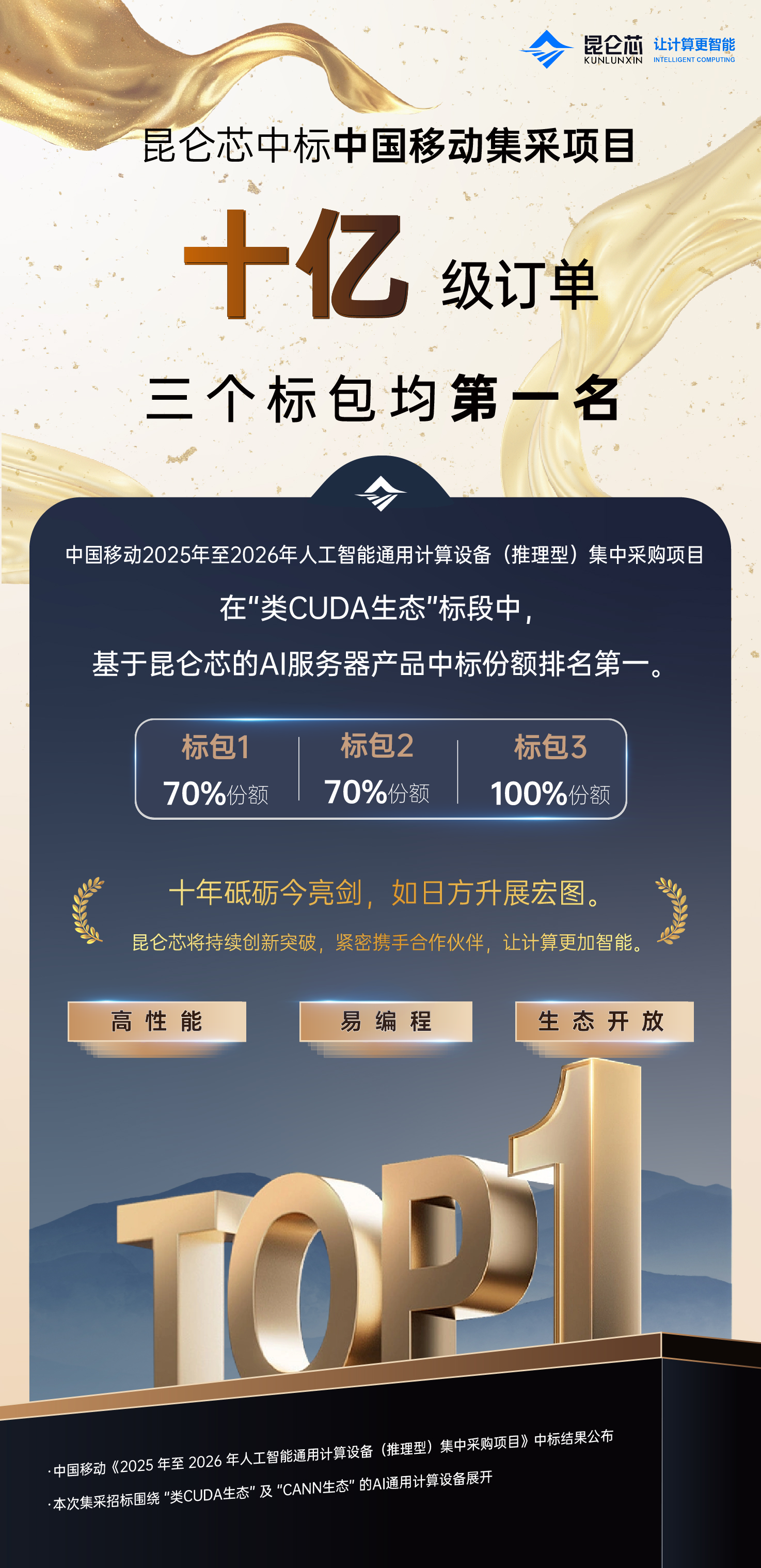 三个标包均第一名!昆仑芯中标中国移动集采项目十亿级订单