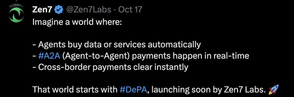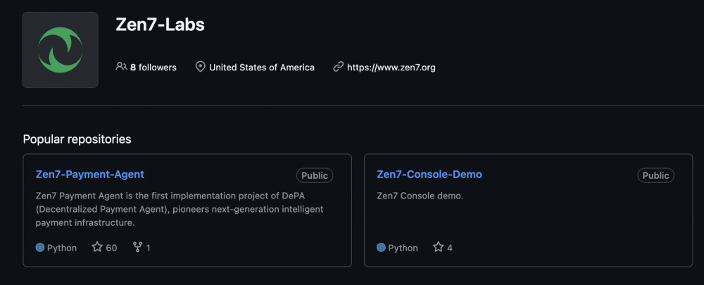 在 AI Agent 经济快速崛起的当下,支付正成为限制智能体自主交易的关键瓶颈。面对传统支付费率高、加密支付操作复杂、平台生态碎片化等行业痛点。近日,Zen7 Labs 正式提出 DePA(Decentralized Payment Agent,去中心化支付智能体) 概念,并率先在 GitHub 上开源其核心产品 Zen7 Payment Agent。Zen7 Labs 是一家专注于智能计算与 Agent 技术创新的国际化团队,核心成员来自 Google、Oracle、阿里巴巴、京东等顶尖科技公司。凭借深厚的技术积累与全球化视野,团队正携手全球开发者共建开放生态,为万亿美元级的 Agent 经济注入新活力。
