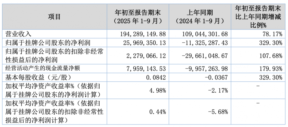 其中,第三季度营收8685万元,同比增长93.55%;净利润1248万元,同比增长596.03%。