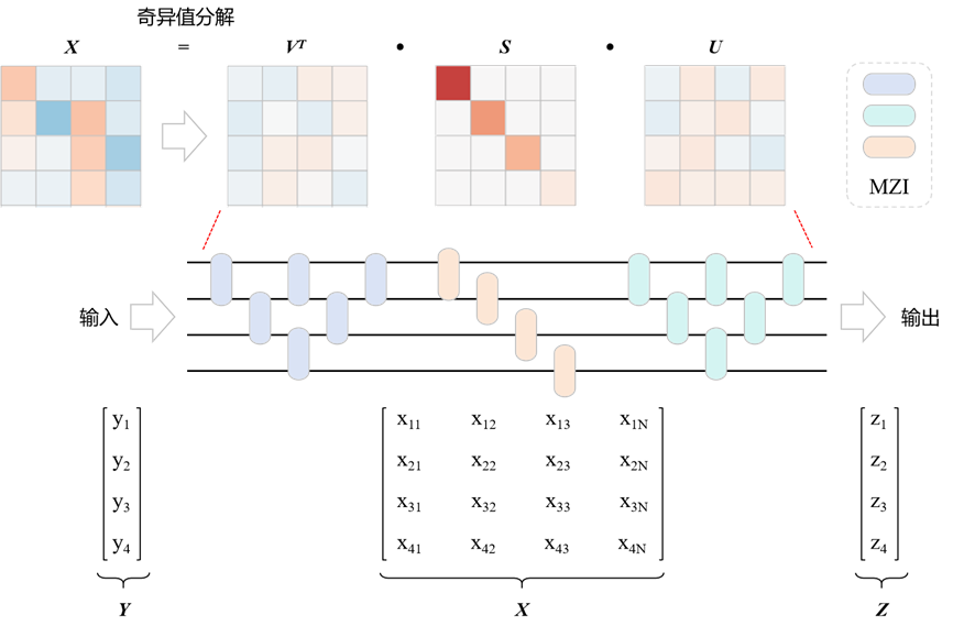 3.基于PCM的矩阵向量乘法:PCM 通过电或光激发在其晶态和非晶态之间实现可逆的快速切换,进而改变光路的传导特性,实现光信号的调制与存储,可以用来编码信息,执行类似神经元激发和突触权重调整的操作。