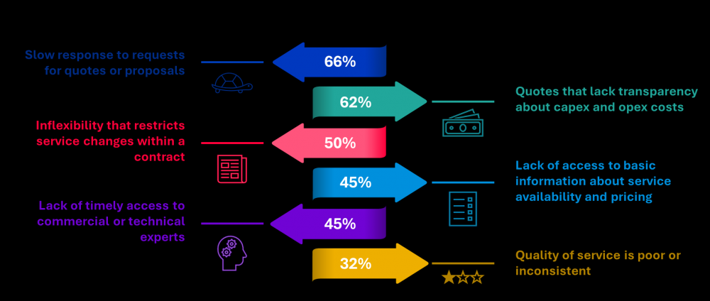 Omdia写到,鉴于当前的批发客户趋势,VMO2着力提升数字化客户体验的策略堪称明智之举。对批发业务买家而言,体验要素的重要性正超越价格与网络覆盖范围。根据Omdia《2025年度批发客户调查》(图1),体验性因素——包括交付延误、沟通不畅、服务质量问题,已成为更换批发供应商的五大原因中的三大原因。
