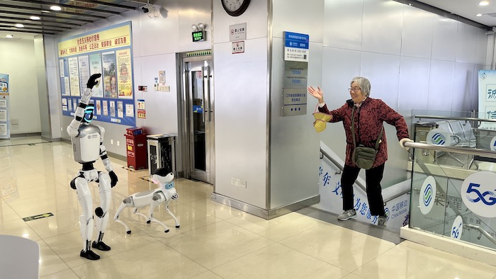 移动智能机器人引导老人前往“中医养生大讲堂”