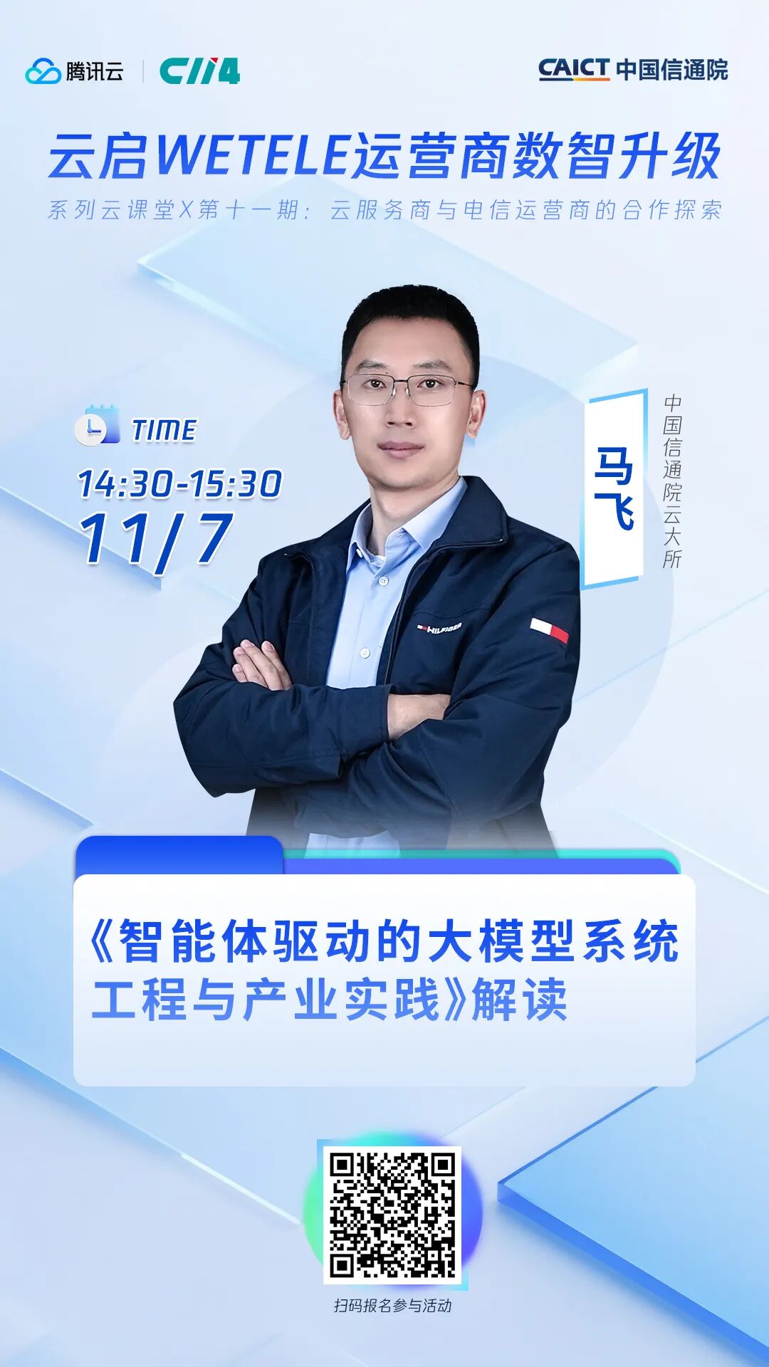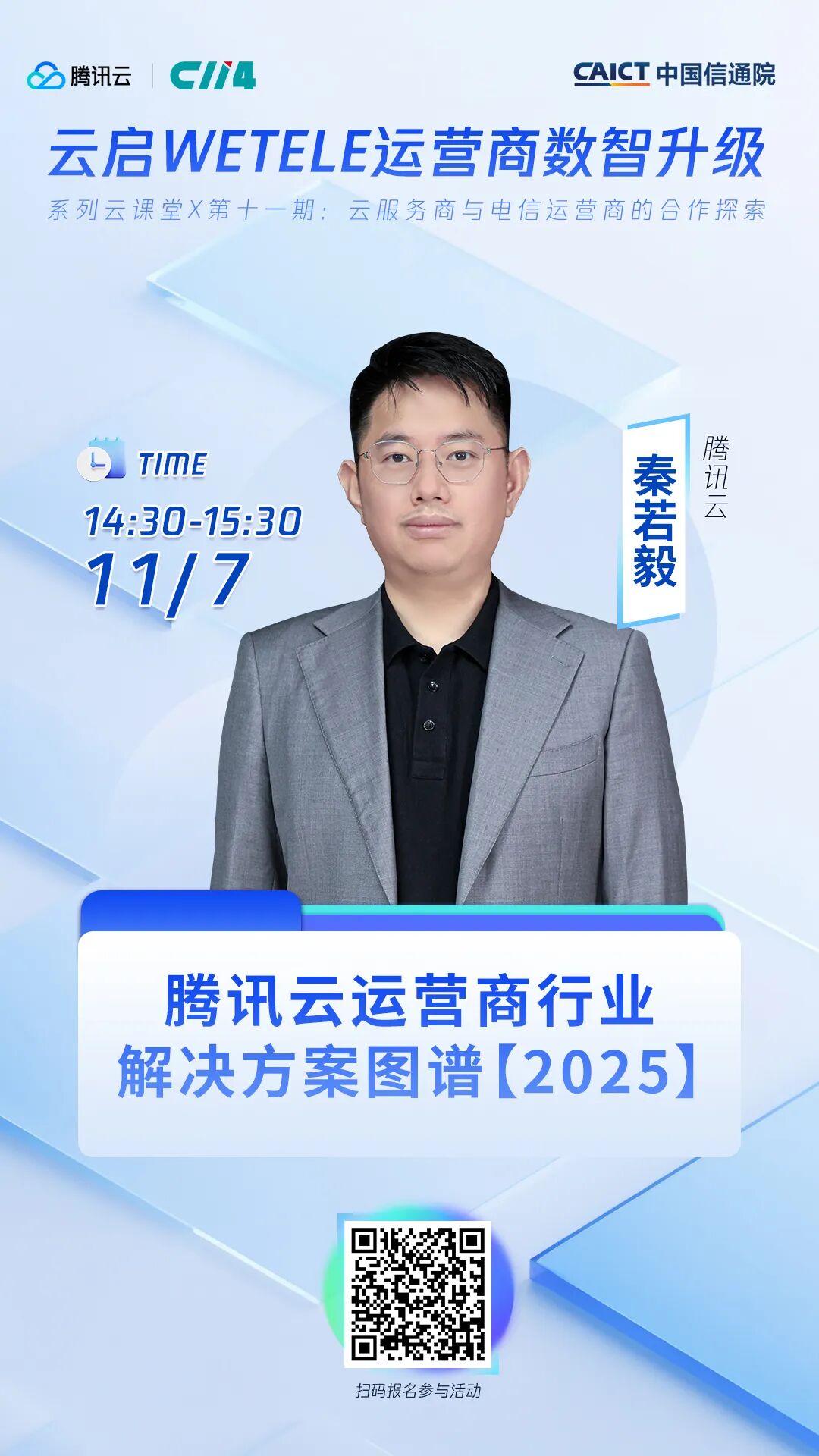 由腾讯云携手中国信通院云大所、C114通信网打造的“云启WETELE运营商数智升级”系列在线课堂,旨在与电信运营商一起,发挥算力网络和云网融合优势,加码AI产业抢占发展先机,探索前沿技术发展,共享产业落地实践,共创数智化转型的无限可能。