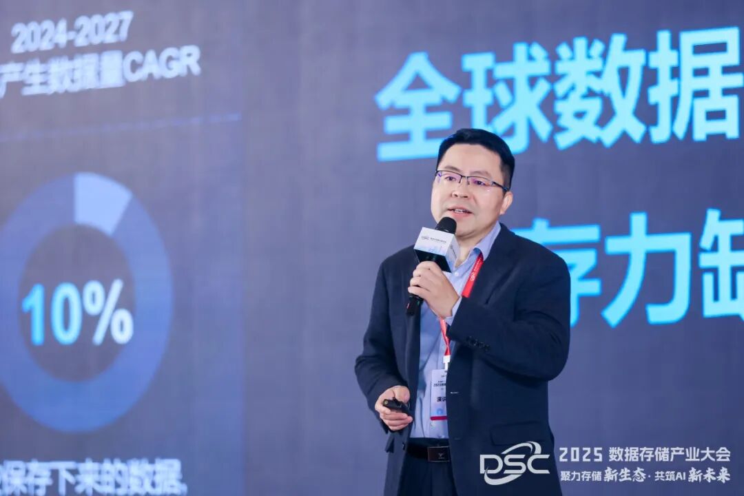 工业和信息化部电子信息司电子系统处处长金磊在致辞中表示,在当前先进计算和人工智能发展高潮中,全球数据存储正加速向YB级迈进,中国数据存储产业迎来历史性机遇并正实现高速增长。他表示电子司高度重视数据存储产业发展,近年来在顶层设计、创新攻关、行业建设、供需对接等方面持续发力,下一步将会同有关方面重点做好以下工作:一是加强战略谋划,统筹提升综合实力;二是聚焦技术创新,推动存储产业突破;三是坚持标准引领,完善产业发展体系;四是深化应用导向,促进存储生态繁荣。