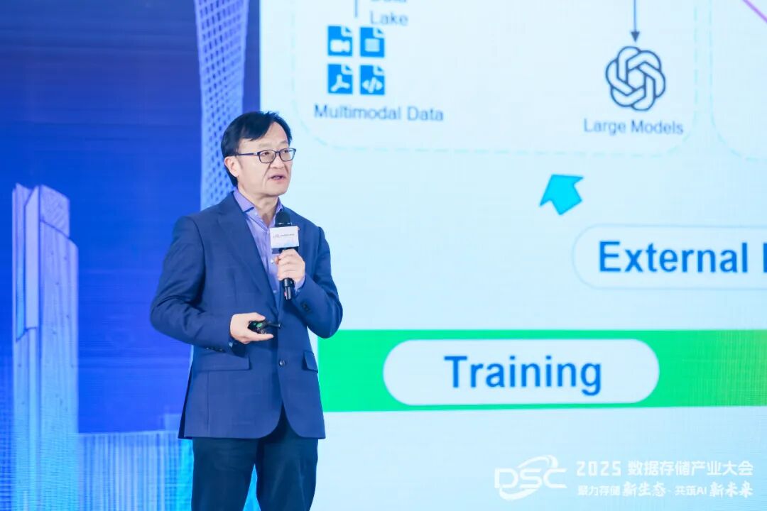 随着AI应用场景持续深化,存储产业将从“支撑角色”跃升为“驱动引擎”。紫东太初大模型中心常务副主任、武汉人工智能研究院院长王金桥分享了多模态大模型训练和部署中如何解决海量、碎片化、异构多模态数据存储,AI驱动数据长存留,冷数据变温。AI驱动存储数据范式重构,以大模型语义理解,推理决策为核心,融合存储硬件、软件架构与智能算法,实现数据“存、管、用”,全流程智能化的新型存储模式。