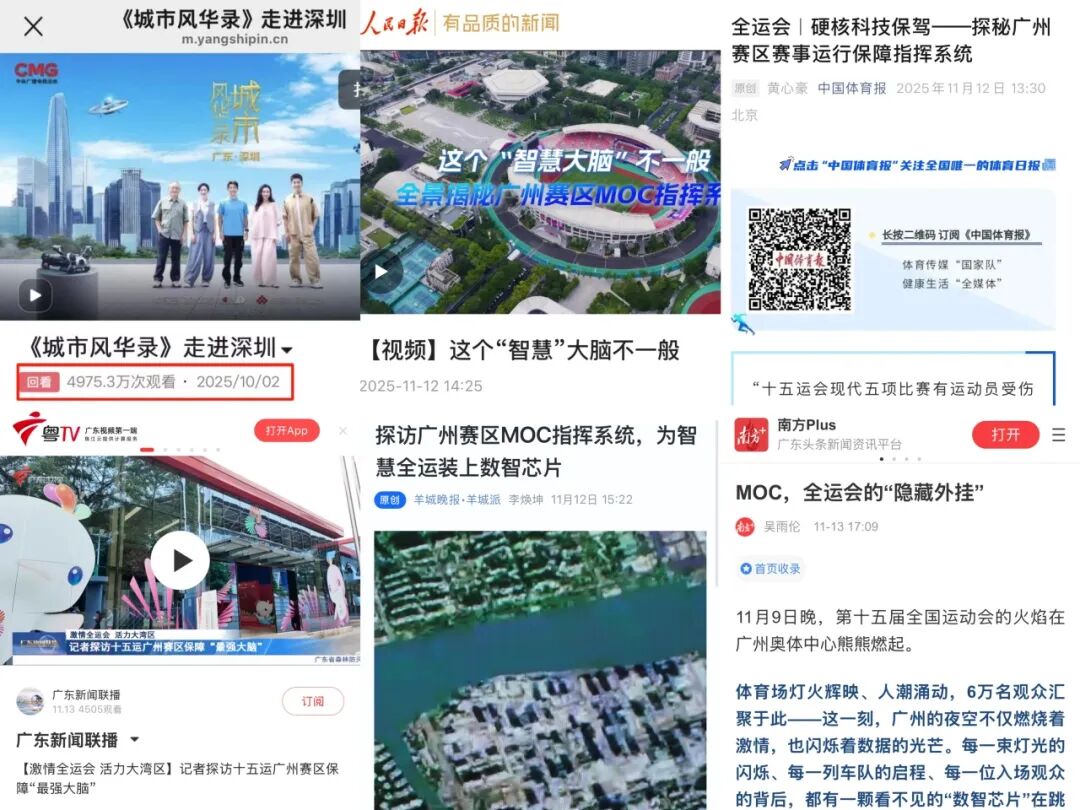 人民日报、中国体育报、广东新闻联播和羊城晚报等主流媒体一致赞誉十五运指挥系统“实现‘一屏统管、一网协同’,树立大型赛事智慧指挥新标杆”。