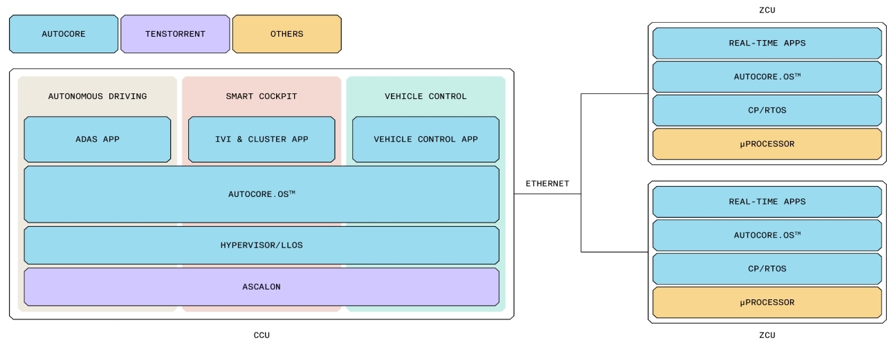 双方将AutoCore成熟的汽车软件平台与Tenstorrent旗下业界领先的TT-Ascalon™ RISC-V处理器核心相结合,为全球汽车主机厂(OEM)提供可扩展、开放标准的架构解决方案。