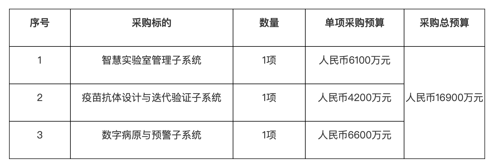 招标文件显示,采购人委托投标人开展呼吸传染病预测预警系统研制,主要以自动化实验装置的调度和管理为基础,提升整个系统的自动化实验通量与数据采集能力,提供必要的计算和存储能力保障关键病原与临床表型数据的解析。基于人工智能和大模型技术构建专用算法,从病原解析、细胞功能、器官表征到临床应用多个层面,整合“呼吸传染病智能解析与预警综合实验平台”中的异构多组学数据,形成健康肺与呼吸感染肺的数字表征能力,提升整个项目的功能应用和对外服务能力。该系统的创新应用将显著提升呼吸道传染病防控的精准度与时效性,为构建主动防御型公共卫生体系提供关键技术支撑。
