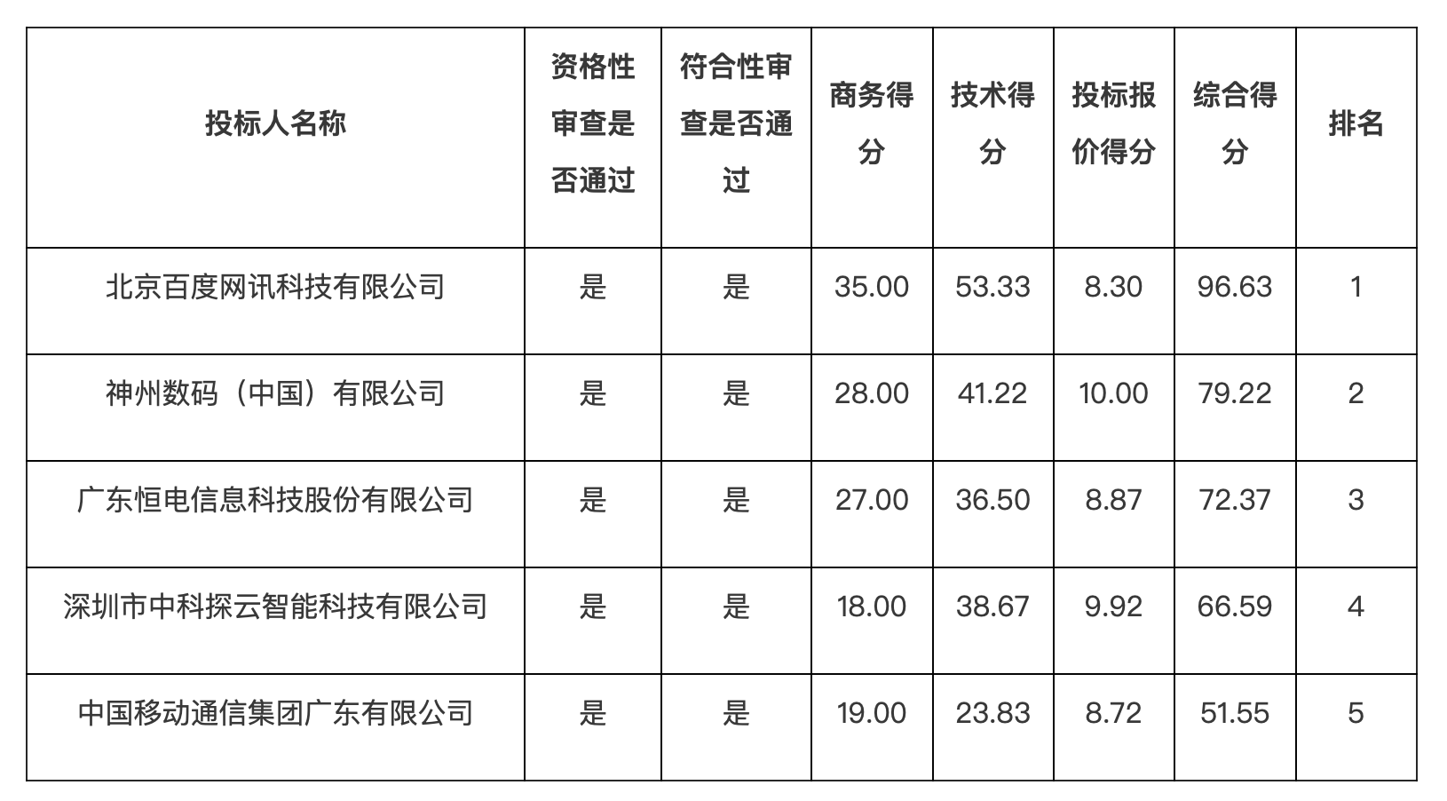 近日,该项目公示中标结果,北京百度网讯科技有限公司中标,综合得分96.63分。中标(成交)金额:1.688亿元。