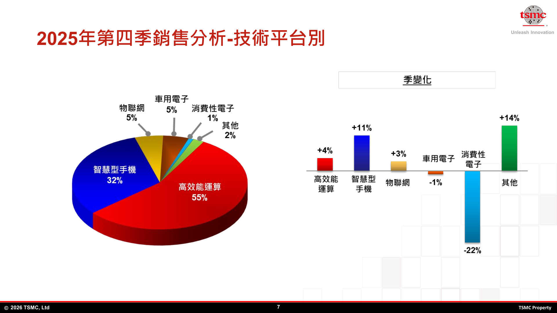 台积电在该企业的 2025 年第四季度法人说明会简报演示文稿中表示,去年 HPC 高性能计算 / 高效能计算领域的营收同比大增 48%,整体营收占比来到 58%,稳居按技术平台划分的第一大收入来源。