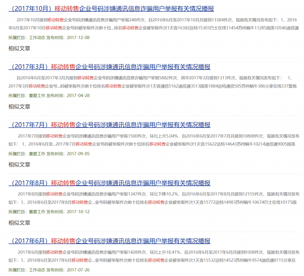 但在这表面繁荣之下,隐藏的问题也逐渐浮出水面:由于运营初期虚商实名制执行松散、实际归属地不明等原因,虚商号段沦为诈骗电话、垃圾短信重灾区。据了解,工信部网站曾每月定期播报虚商涉诈情况。根据披露数据,工信部每月接收移动转售企业号码涉诈举报平均上千次。
