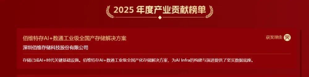 C114讯 1月28日消息(南山)近日,在C114举办的2025年度AI+“硬核”榜单评选中,佰维旗下工业车规存储品牌佰维特存打造的“AI+数通工业级全国产存储解决方案”,重磅入选“2025年度产业贡献榜单”。C114编辑部认为,存储已成AI+时代关键基础设施,佰维特存为AI Infra的构建与演进提供了坚实数据底座。