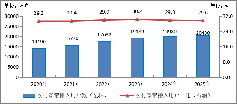 图2-4 2020—2025年农村宽带接入用户及占比情况