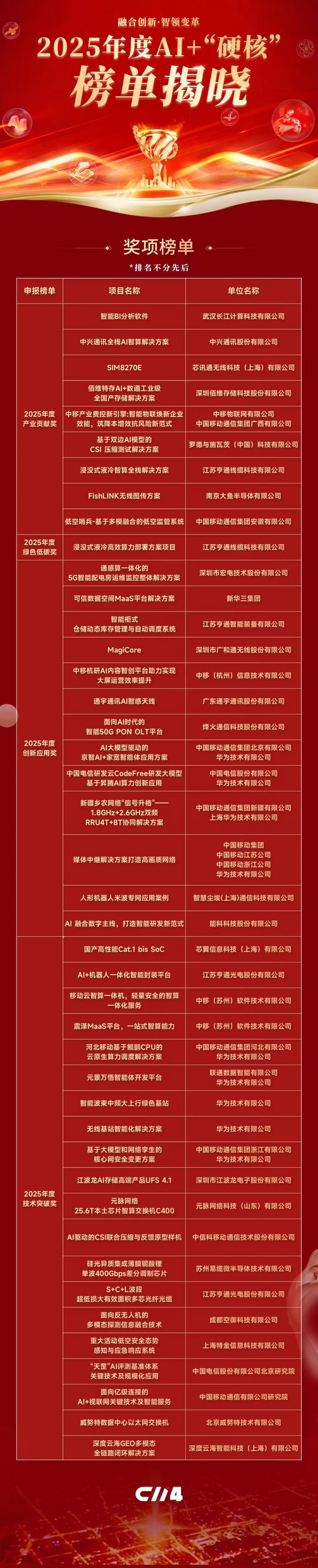 回望2025年,AI已深度融入信息通信基础设施的底层架构与上层应用,不再局限于单点提效工具,而是成为驱动整个信息通信产业跃迁的“新质生产力”。最终出炉的榜单,也深刻揭示了这一点: