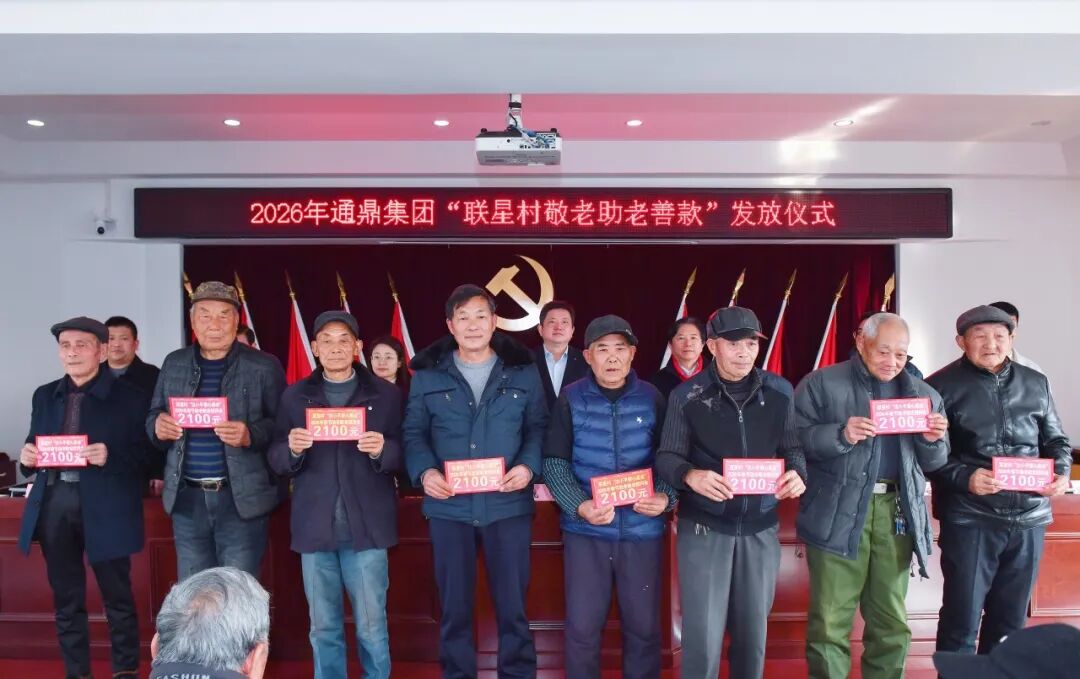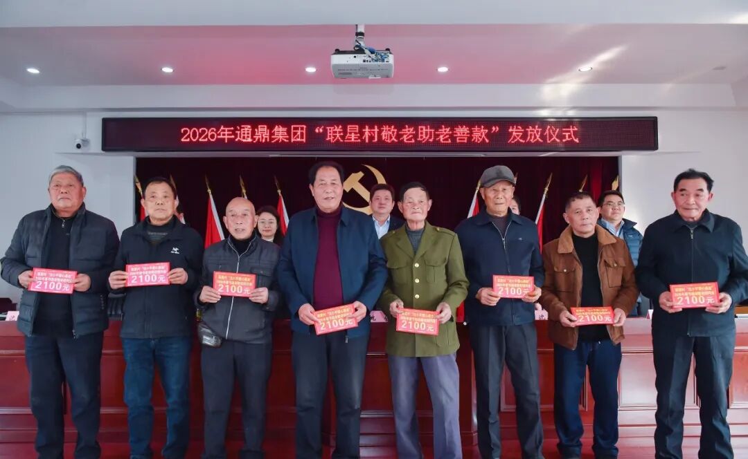 新春将至,暖意满乡。为弘扬尊老敬老爱老助老传统美德,2月13日,通鼎集团在联星村党员活动中心举办敬老助老善款发放仪式,以暖心行动践行企业社会责任,让浓浓敬老情在乡村间流淌,诠释“饮水思源,情系桑梓”的真挚内涵。