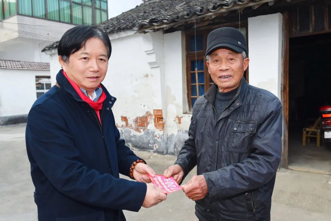 发放仪式结束后,姚俊镇长与沈小平董事长共同带队走访了村内部分高龄、困难老人,将助老款与新春祝福亲手送到老人手中,与老人亲切交流,传递暖心关怀。