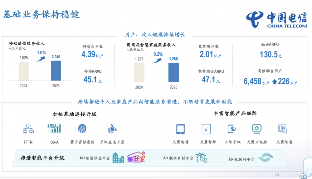 综上来看,运营商的“基本盘”正经历一场深刻的化学反应。虽然“连接”这一物理基础没有变,但其附着的价值形态正在发生剧变。从单纯的流量管道,转变为融合AI、算力、卫星通信的智能服务提供商,三大运营商正试图通过“变”来打破“不变”的增长天花板。