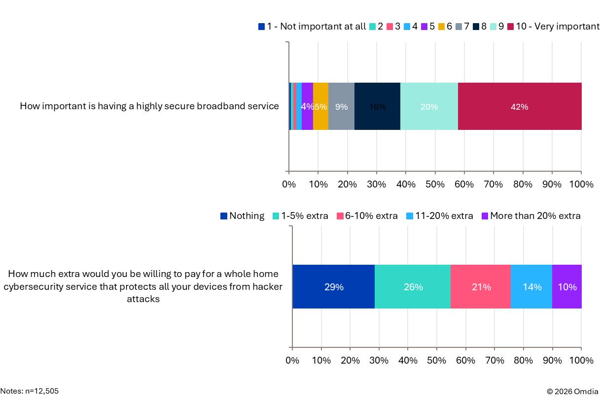 图1:消费者高度重视高安全的连接服务,并且许多人愿意为此付费。资料来源:Omdia。