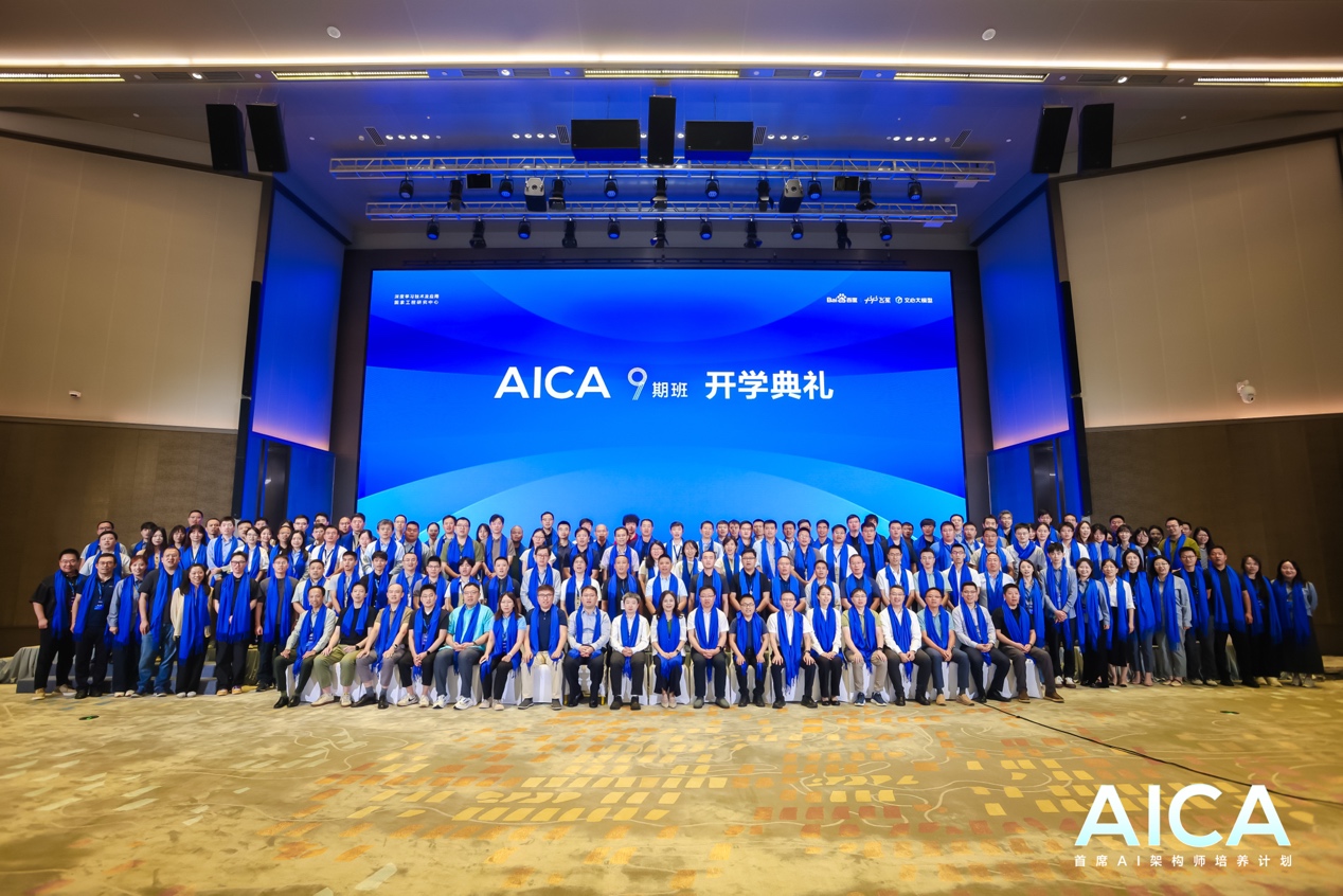 8月15日,由百度与深度学习技术及应用国家工程研究中心联合发起的AICA首席AI架构师培养计划(以下简称“AICA”)在北京举办第九期开学典礼。经过半年的预科班课程学习、严格的项目技术评审以及面评等多重筛选,96位企业CTO、技术高管学员从近500位报名者中脱颖而出,将开展为期半年的 AI 大模型研发和应用共创学习。茅台、麦当劳、奔驰等90余家来自18个行业的企业技术管理者将与百度一起围绕大模型、多模态、智能体和产业链协同等前沿方向,开启为期半年的共学之旅。