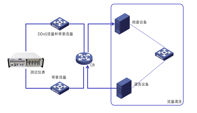 1. 测试仪表发送5Gbps的应用层混合流量作为背景流量,流量类型包括HTTP、FTP、DNS、NTP、SMTP、SIP、RTSP、SSH以及少量与攻击流量相同协议类型的正常业务流量。背景流量的源/目的地址尽量分散。
