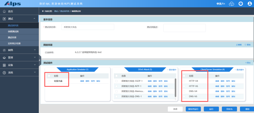 部署防护措施后,如何验证其有效性?以下使用信而泰DarPeng2000E测试仪表对于反射放大攻击进行测试验证: