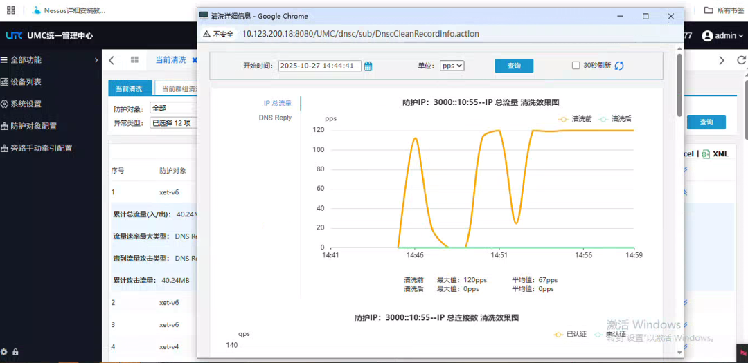 4.查看清洗设备状态,背景流量转发正常无丢包,不会被牵引到清洗设备,反攻击流量全部被牵引到清洗设备: