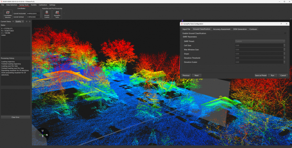 PCMasterPro 1.16 专为支持遥感载荷设备(RESEPI™)产品线打造。该系列产品为行业领先的一体化系统,集成双天线 GNSS 辅助惯性导航、数据记录、激光雷达、相机及通信功能,可实现点云(point cloud)方案的实时生成与后处理。