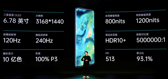 以屏幕为例。目前全面屏已经成为手机行业的发展趋势,极大限制了厂商在设计领域的优势,但是OPPO转而对屏幕体验“狠下功夫”。Find X2系列拥有旗舰级的屏幕体验,采用6.78英寸柔性OLED屏,屏幕刷新率高达120Hz,触控采样率高达240Hz,支持10 bit屏幕的10亿色臻彩显示。同时搭载独立显示优化芯片,支持HDR10+,还荣获了专业的显示测试机构DisplayMate 给 A+顶级评价,并刷新了12项智能手机最佳屏幕纪录。