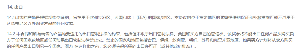 值得一提的是,小米的条款中明确指出:禁止买家将手机出口到特定地区。