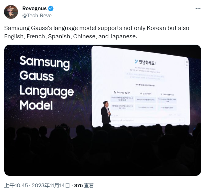 根据博主 @Tech_Reve 爆料,三星高斯的语言模型不仅支持韩语,还支持英语、法语、西班牙语、中文和日语。也就是说,国内用户也有望在后续体验到高斯大模型。