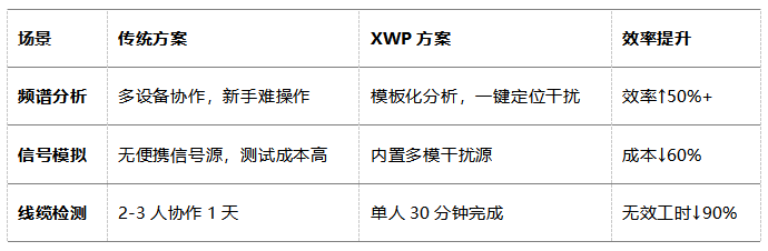工具繁重低效:传统测试需携带频谱仪、信号源、线缆仪等多台设备,移动性差;