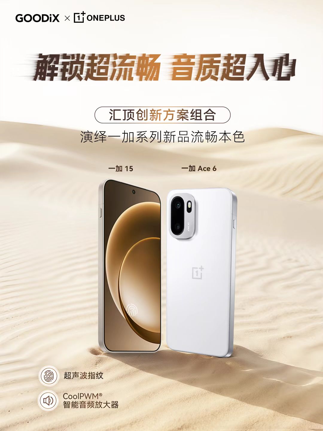 同时,此次发布的新品还深度集成汇顶超声波指纹、智能音频放大器等前沿技术,全面升级智能体验。其中,汇顶自研的CMOS Sensor架构超声波指纹方案,支持滑动录入功能,凭借出色信噪比和精准识别,为消费者带来安全可靠、丝滑流畅的解锁体验。此外,汇顶独创的CoolPWM®架构智能音频放大器,完美匹配硅负极电池设计,高效输出同时大幅降低功耗,让纯净音质"超入心",悦耳体验不间断!