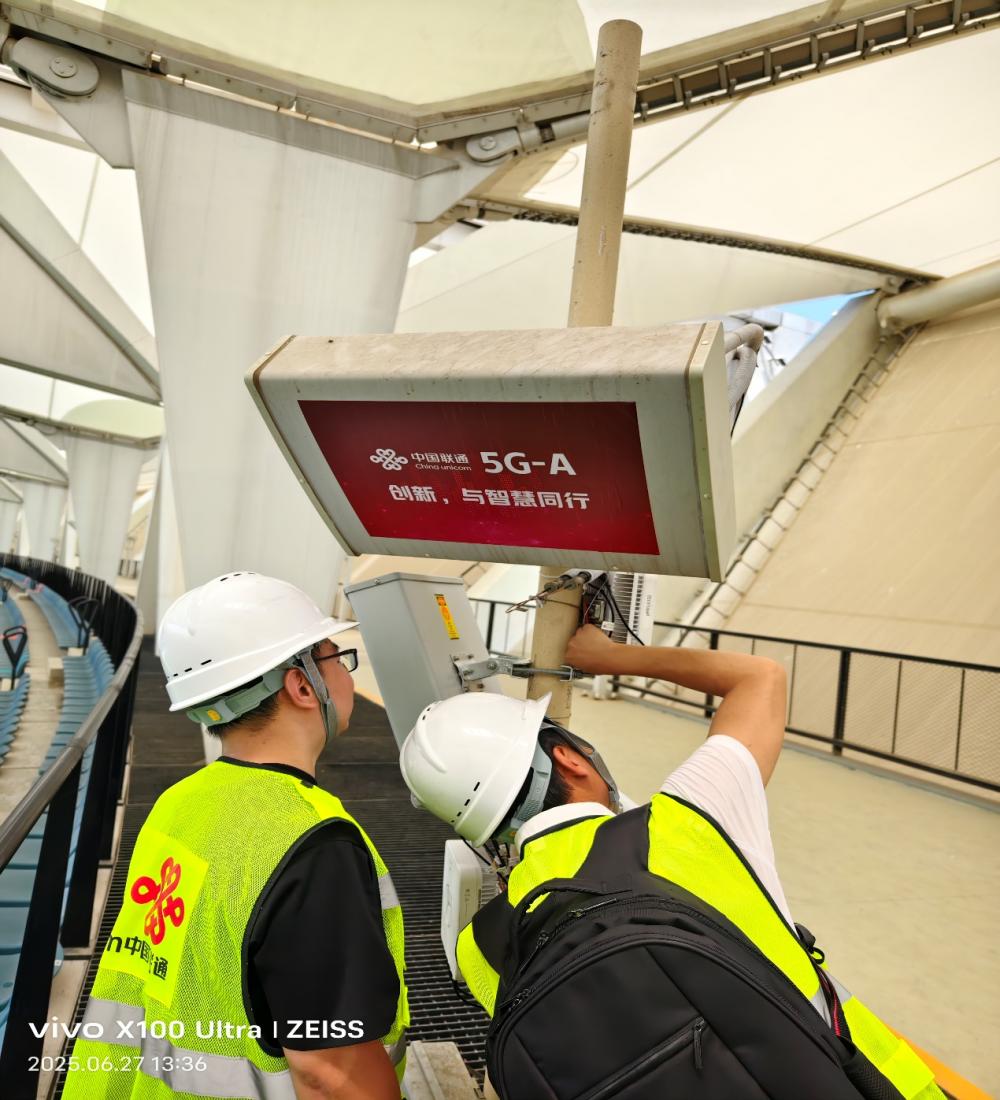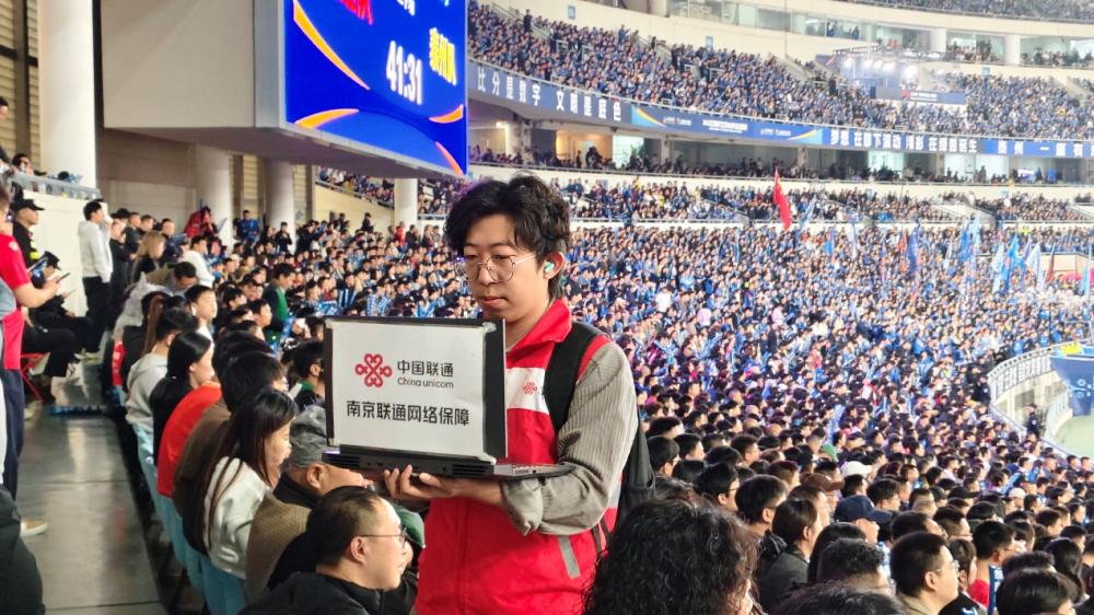 在南京奥体中心,面对场均超6万观众的超大话务场景,江苏联通利用支持大带宽设备,开通多频段载波聚合功能,大幅提升网络容量;在回廊休息区利用5G异频组网覆盖,避免了和场内信号相互干扰;在场馆出入口开通应急通信车,保障出入口密集人流通信需求。同时利用5G-A新技术,开通联通用户可自主选择的“专属左标”功能,如“江苏南哥必胜”、“南京加油”等标语,让用户在畅享高清直播的同时,更好的承载了球迷为支持的球队加油打Call的热情,联通利用新型技术让网络承载了城市情怀和球迷热情,全民参与文旅赛事的意义得到升华。