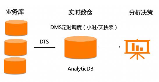 以某银行为例,该银行采用一站式敏捷数据仓库方案构建实时数仓,以支持各业务线高效、定制的分析和决策需求。DMS集成DTS非侵入式实时日志解析能力,进行数据实时入仓,极大降低了数据同步过程中对业务系统的资源消耗,对业务操作零干扰,大幅降低实时数仓建设难度。此外,方案助力该银行按T+1(小时)频率快速生成快照表,千万数据级快照只需3分钟,结合ADB对海量数据的毫秒级交互式分析能力,进一步提升了实时数仓对分析决策的支撑效率。