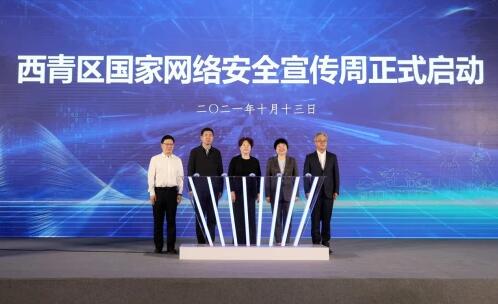 活动现场,天津市委宣传部副部长、市委网信办主任、市大数据管理中心主任王芸,西青区委书记李清,西青区委副书记齐中波,天津市委网信办副主任程勇,中国系统高级副总裁王晓亮共同启动了2021年国家网络安全宣传周西青区活动。
