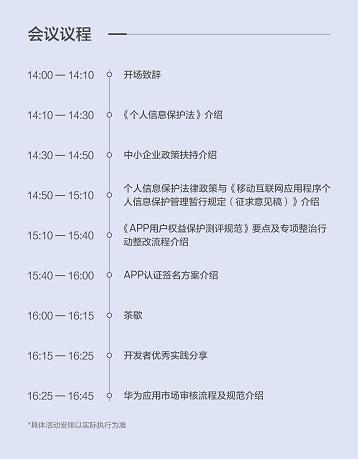 本次宣讲会将由中国信息通信研究院、工信部中小企业发展促进中心等专家带来APP个人信息保护、APP专项整治行动检测要点及整改流程、APP认证签名方案等一系列国家应用安全与用户隐私保护政策的讲解。同时,华为也将介绍华为应用市场在个人信息保护方面的相关审核流程和规范,携手开发者一起守护用户的个人信息安全。欢迎广大开发者前往华为开发者联盟官网首页报名参加,共同守护用户隐私安全,我们期待您的踊跃加入!