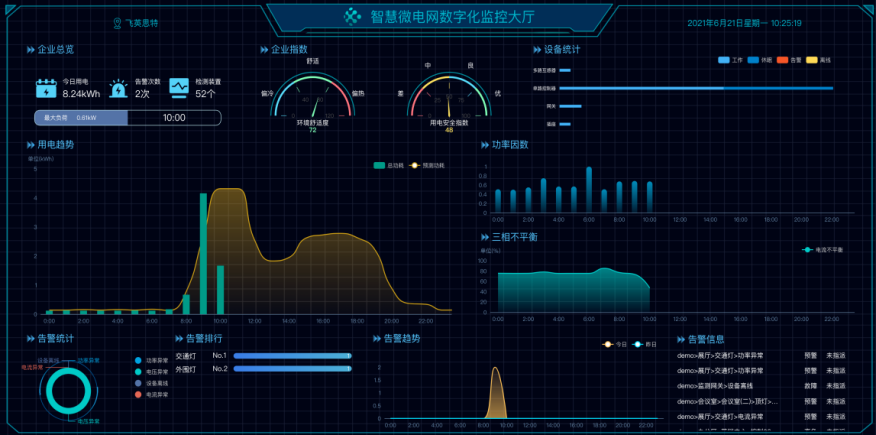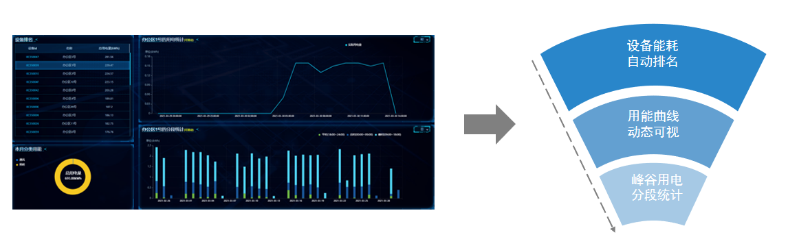在耗能最多的设备端,该系统采用针对性更强的监测功能设计,企业可通过该方案深入掌握高能耗设备的用电情况和异常监测,并基于数据的沉淀形成设备安全分析标准,当设备数据发生异常时提前向用户端发送多维度安全预警通知。