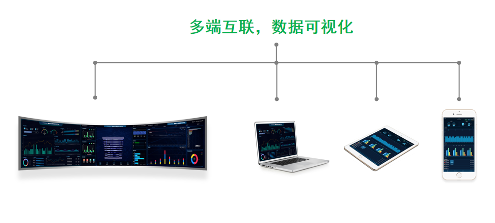 通过一系列终端感知网络的搭建,该系统得以实现多端互联、数据可视化的效果,并形成直观的场景互动。管理人员可通过智慧显示大屏、APP、电脑终端,远程可视化控制,一键上班、一键下班等多种场景模式,杜绝“长明灯”、“长待机”导致的能耗浪费。