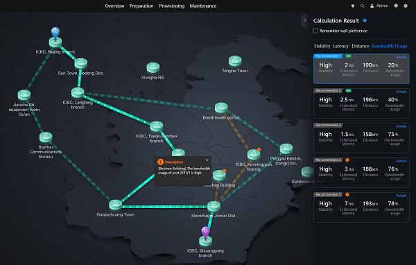 天津移动在拓展政企市场时,经常面临客户对专线的各种诉求,其中对于时延的要求越来越高,现有算路系统有时无法匹配客户诉求,影响客户满意度。为了进一步响应客户业务诉求,天津移动引入华为iMaster NCE光专线算路推荐系统,在算路规划时,提供多因子可选,高效匹配客户业务场景,自动识别故障场景和处理建议,提供最优路径推荐,能够提升网络规、建、维、优全流程能力。基于RankNet进行路径排序,智能推荐最优路径,满足不同客户习惯,通过“角色识别”,自动绕开风险节点,为业务安全护航,打造更快、更智能、更安全的光专线。