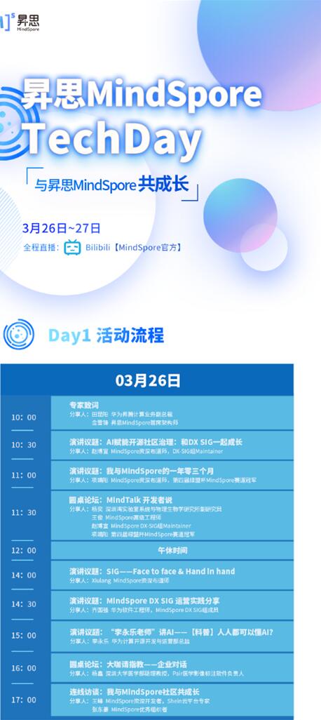 昇思MindSpore作为华为开源的全场景AI框架,具备开发友好、运行高效、部署灵活等优势,目前已应用于医疗、金融、制造等多领域,支撑基础科研实现创新突破;2021年下载量超百万,并在1000多万个码云开源项目综合排名第一,是国内热度最高的AI开源社区。2022年3月26日-27日,昇思MindSpore社区举办年度TechDay,将带来技术升级、社区分享、实操干货、大咖经验分享等精彩内容,为AI开发者献上一场“饕餮盛宴”。