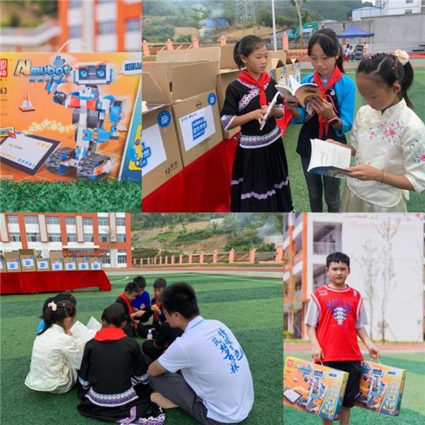 “家里只有一些积木玩具,编程积木机器人是我第一次见,这个真是太有意思了。”全球通蓝色梦想公益计划为广西罗湖小学的同学们带去许多爱心物资,还有孩子们喜欢的编程积木机器人、迷你无人机等益智玩具,孩子们好奇地围在一起认真地研究起来。