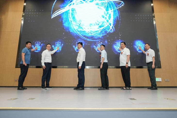 最后,十堰市经济和信息化局、十堰市市委网信办、十堰日报社、中国联通十堰市分公司、华为技术有限公司单位领导上台,正式点亮“十堰千兆城市数智家庭宽带服务新标杆”启动按钮,标志着开启千兆宽带服务新篇章。